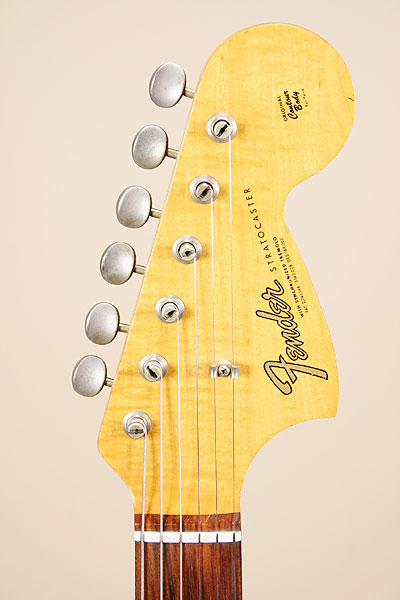 今回の1966年製を例にすると、まずヘッド形状だが、それ以前のモデルに比べて、サイズが大きくなり、厚みも増し、外周ラインまでも変わっている。意外と気づかない部分で言うと、ナットから6弦のストリング・ポストまでの距離が1965年までのモデルと比べて異なっており、この外形上の変化により弦のテンション・バランスも変わったことをご存知であろうか。