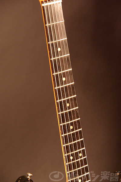 指板材は通称“ハカランダ”と呼ばれるブラジリアン・ローズウッドを使用。この頃のものは色が濃く、詰まった感じの艶のあるハカランダが使用されている。深みもありながら、強烈なアタック感のある独特のサウンドは1963年ならではの魅力だ。