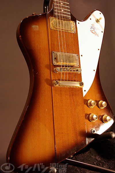 ギブソン・ギター変形シリーズの中で、斬新なフォルムを保ちつつも、どこか落ち着きのあるクールな佇まいも感じられるモデルがファイヤーバードであろう。ギブソン初のスルー・ネック構造を採用したモデルとして知られ、1960年代に諸事情により数々のマイナー・チェンジもされてきた歴史を持つ。発売は1963年で、スペックの違いにより、モデルが区分されていた。