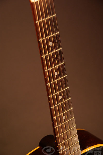 セルロイド製のピックガードをネジで固定するなど、コストを下げるための工夫が随所に見られますが、サウンドはマホガニーならではの深みと柔らかさを兼ね備え、これにスモール・ボディ特有の繊細な高域がミックスされ、総合的にはブルージィなサウンドが持ち味となっています。