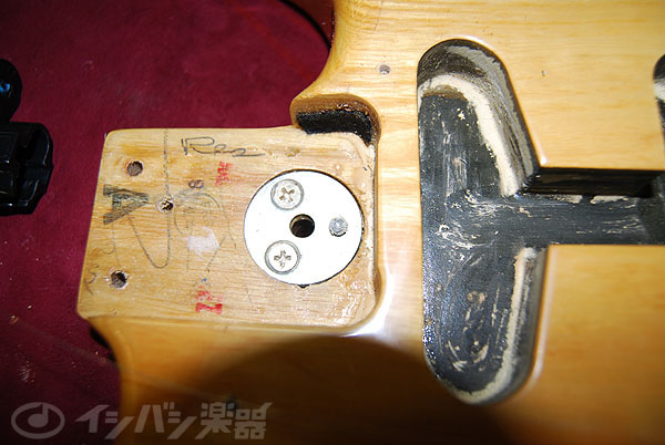 1978年にはアッセンブリーの配線法の中でアースの取り方が変更となりました。それまではピックガード裏面に貼ってあるアルミ・シートと金属製のポットが接触していることで、これをアースとして利用していましたが、この方法だとポットを固定する六角ナットが緩んでしまった場合、ポットがアルミ・シートと離れてしまうことでアースが断線……すなわち音が出なくなってしまいます。そこでボリュームとふたつのトーンそれぞれのポット裏に黒いアース線をハンダ付けして結ぶという改善方法が1978年に行なわれ、この改善により、音が出なくなるというトラブルが減りました。 1979年にはさらにアッセンブリーの改善策が取られます。今ではノイズ対策として一般的な導電塗料をキャビティ内に塗り、シールディング加工がされるようになりました。よりハイゲインなサウンドが求められれるようになり、他メーカーでもシールディング加工方法の開発が進んでいました。ギブソン社でも裏のパネルを外すとコントロール部分を覆うようにシールディング・ボックスを被すなどしていました。