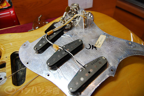 その後、ボディやピックガードを筆頭に各パーツにもシリアル・ナンバーが振られるようになり、1978年頃になるとネックとアッセンブリーに同一のシリアル・ナンバーが付くようになります。ピックアップのボビン裏にもデータが入っており、最後の2桁が年式を表わすことが多いですが、これが消えかかっていたり、スタンプされていないものも存在します。