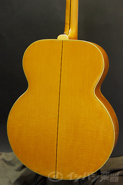 ナチュラル・カラーが登場するのは発売から10年後の1948年。戦前まではボディ・サイド&バックにローズウッドが使用されていましたが、戦後からはメイプルを採用。倍音と基音ともに華やかな響きを放つローズウッドに対し、メイプルはきらびやかさの中に、ややコンプ感のあるサウンドが持ち味となっており、これが今日のJ-200のサウンドを形作ったと言っても過言ではないでしょう。