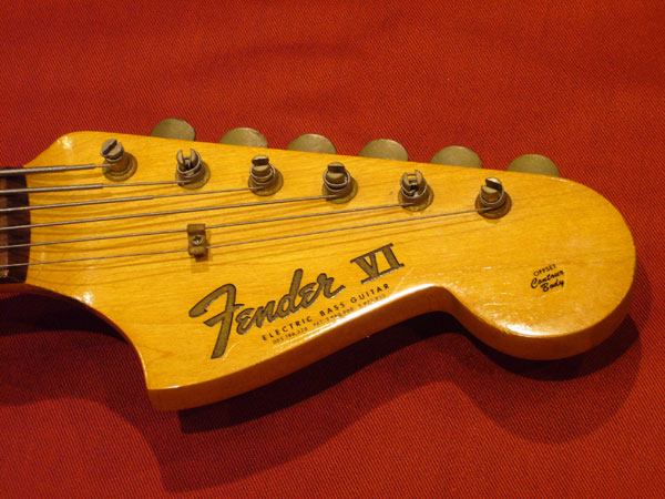 1961年後半にプロダクトが開始された、ご存じ6弦ベースです。ジャズマスター風のボディ形状にピックアップ切り替えスイッチと、ジャズマスターと同じビブラート・ユニットを搭載。アームが使用できるベースとして、当時としては最新鋭のモデルでした。スラブ・ボード指板の初期モデルは、ストラトと同じスタイルのピックアップを4点でネジ止めし、四角いクローム・プレートでマウントしていました。