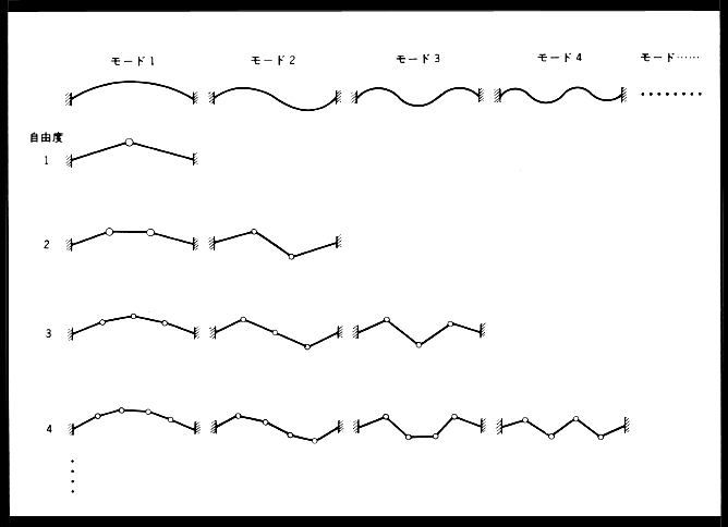 その結果、色々な振動が可能である。このような種々の振動成分をモードと読んでいる。
