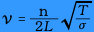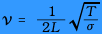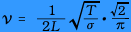 これは実際に弦に現われる振動数と異なる。 長さLで両端が固定された均一な弦では、弦の単位長の重さを綿密度と言いσとすると、 ↓下のような振動数を有する。 |