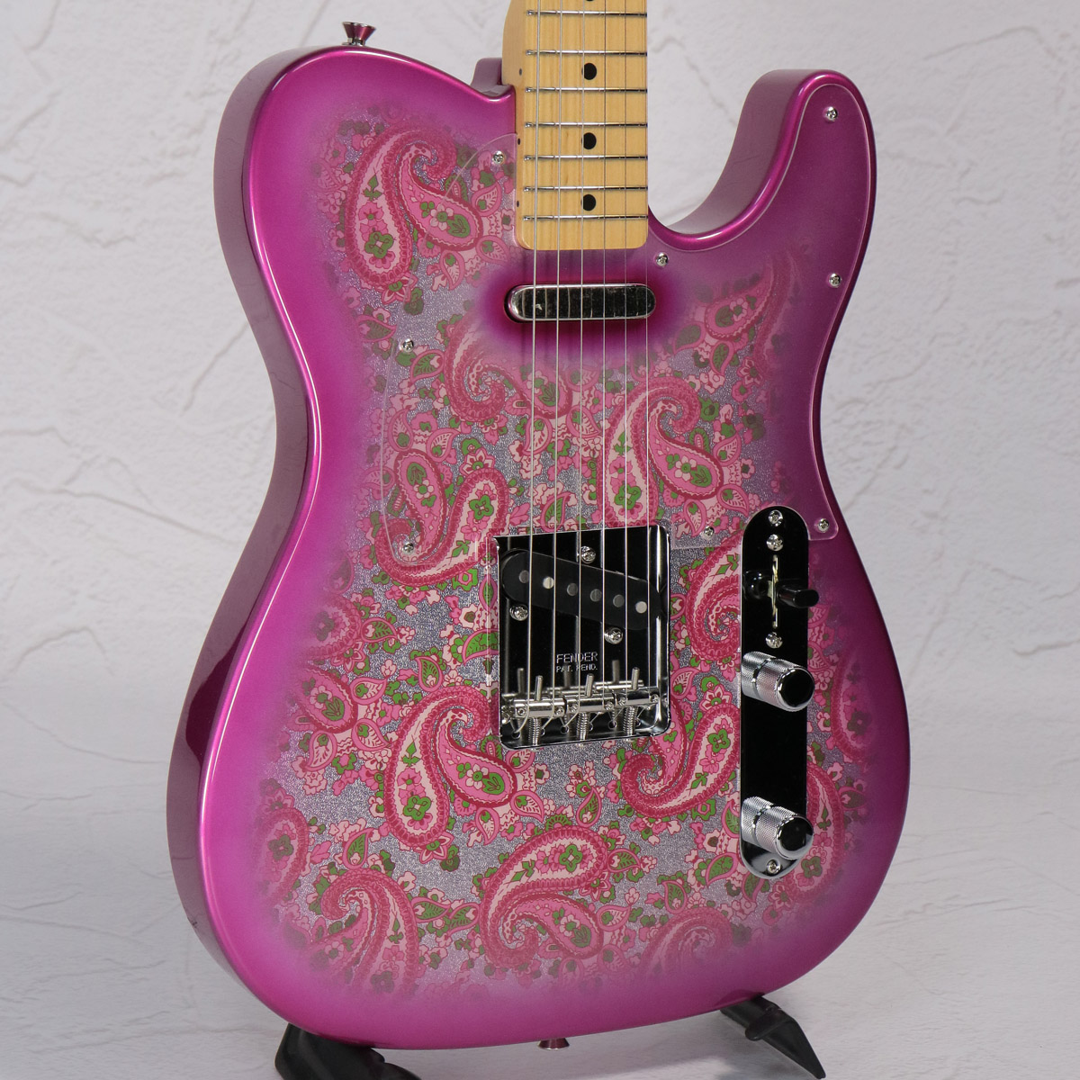 Made in Japan Limited Telecaster Paisleyは、ペイズリー柄のシートを貼り付けた、グロスフィニッシュのアルダーボディを採用。