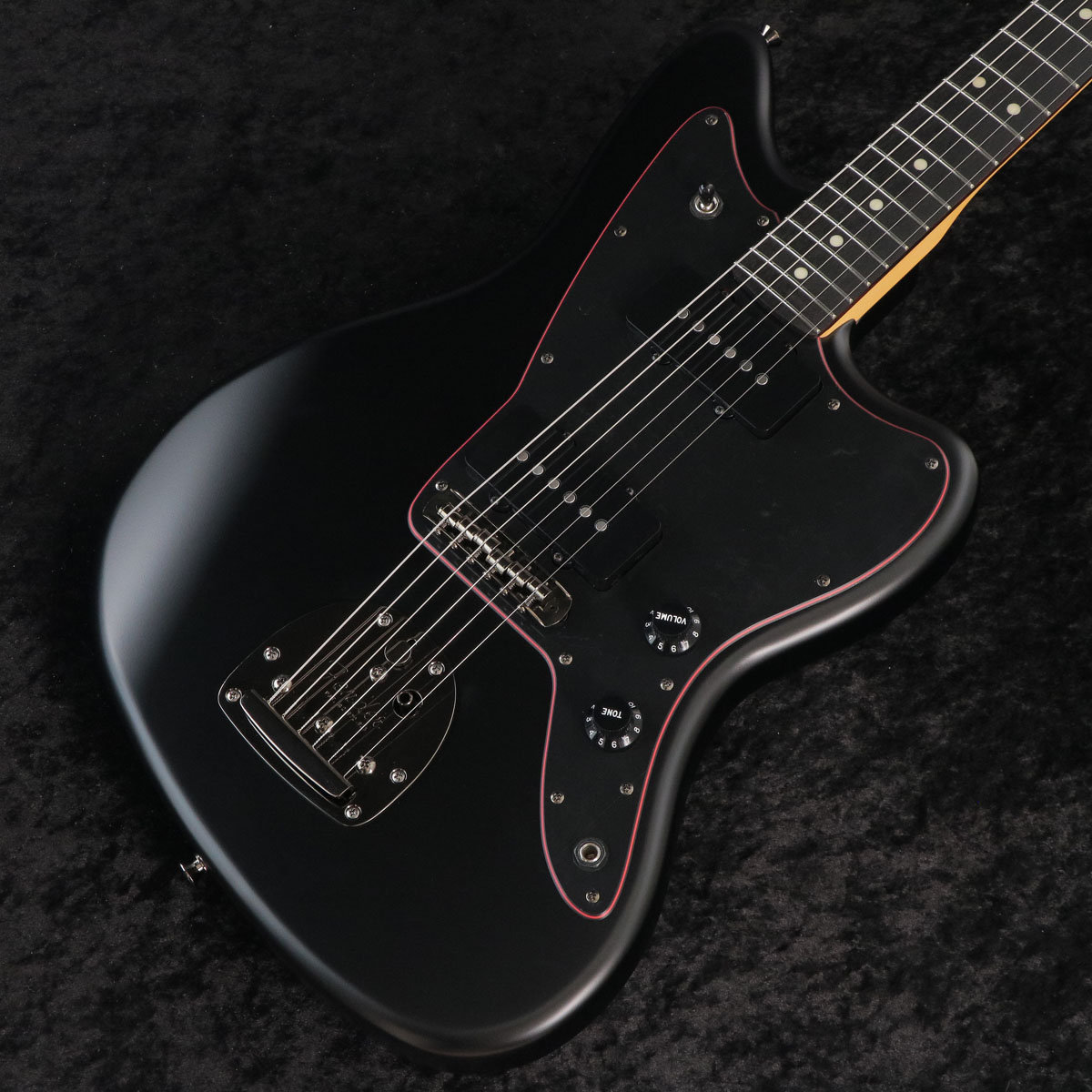 Made in Japan Limited Hybrid II Jazzmaster, Noirは、フランス語で黒を表す””Noir””をモデル名に採用した、黒と赤を基調とした力強いルックスの製品です。