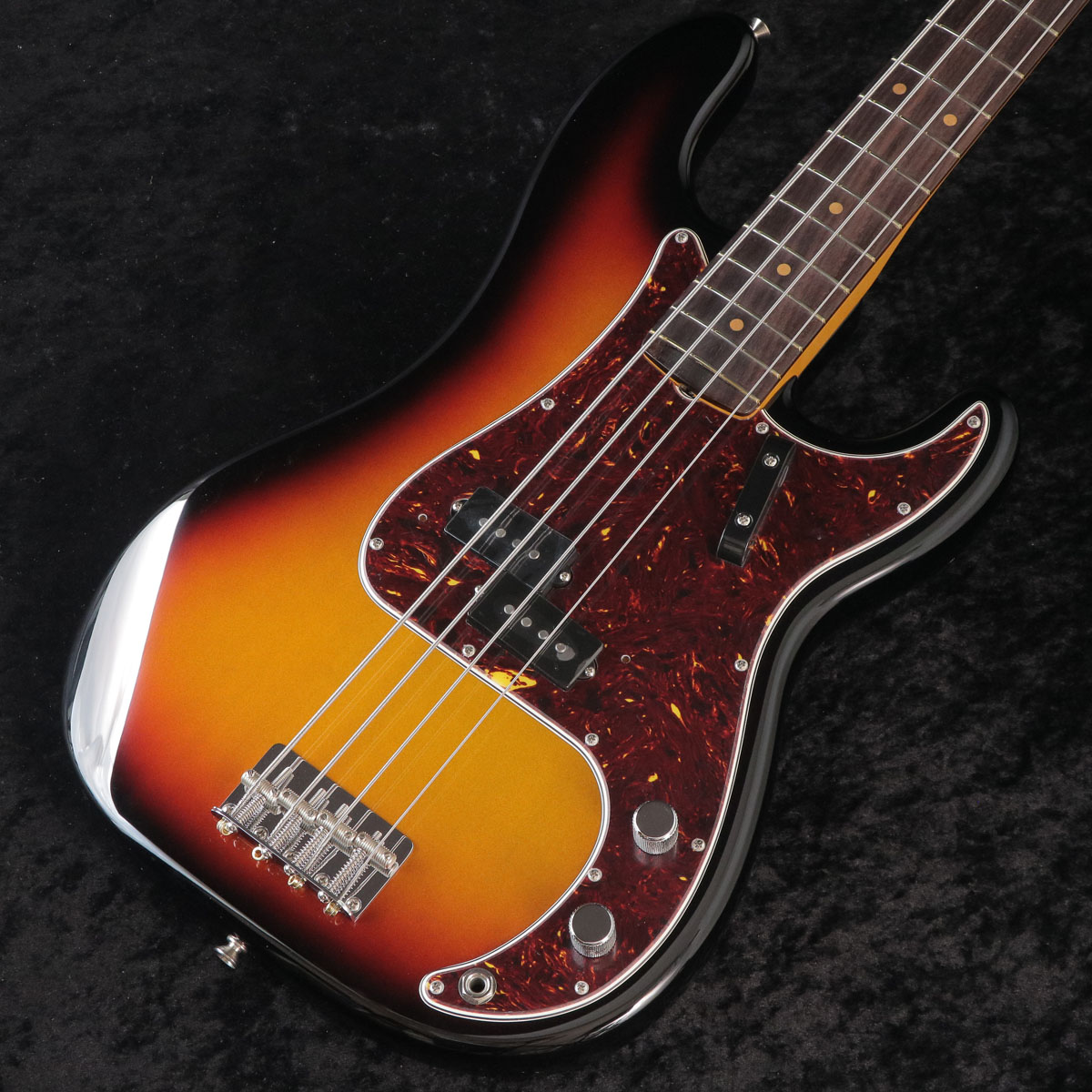 3-Color Sunburstに塗装され、4plyべっ甲柄ピックガードを備えた1960 Precision Bassは、普遍的な、洗練されたスタイリングを手に入れたのでした。