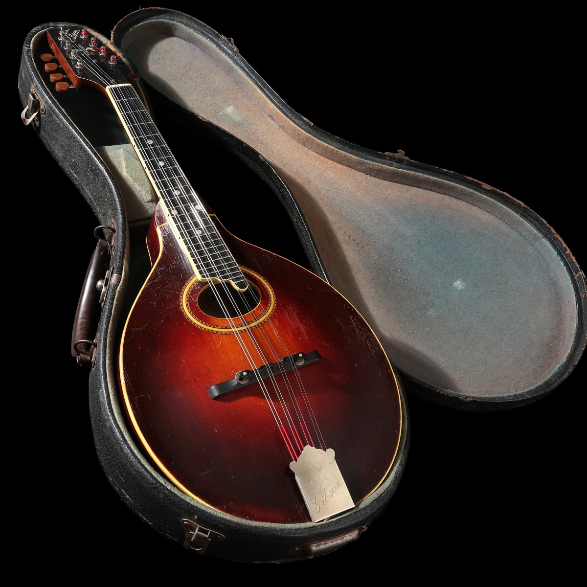 1923年から1928年の僅かな期間にしか生産されなかったスネークヘッドのA-4です。当個体にはヴァージ・トーン・プロデューサーが取り付けられています。ラベルに印字されたシリアル・ナンバーは完全に消失していますが、ネック・ブロックに印字されたファクトリー・オーダー・ナンバーは8096と読み取れます。ただし最後の6の部分にインクの滲みがあり断定はできかねます。ヴァージ・トーンのシリアル・ナンバーは10574と読み取れますが、こちらもラベルの剥がれがあり断定はできかねます。8000番台ファクトリー・オーダー・ナンバーは1925年以降と記す資料があますが、当個体はペグ・ボタンの色、ブランド・ロゴなど外見的特徴やヴァージ・トーンのシリアル・ナンバーを鑑みると、おそらく1924年に製造されたものを思われます。いずれにしても貴重な一本です。