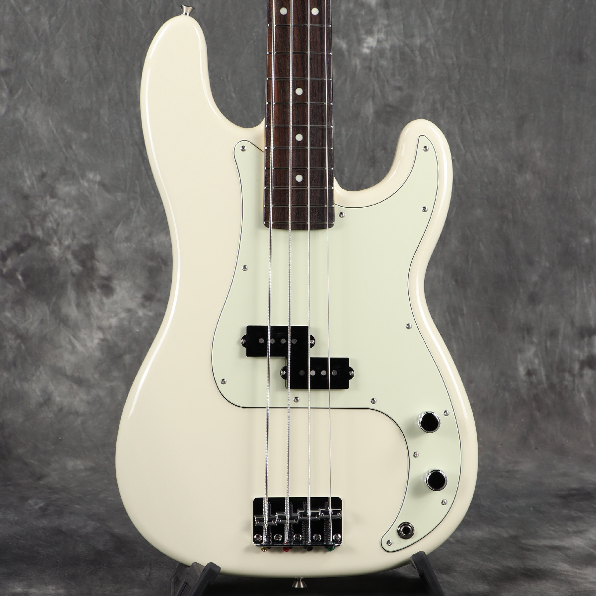 現行のフェンダー日本製ベースでは、 HAMA OKAMOTO PRECISION BASS OWH に使用されるこのカラーは若干黄色みがかったVintage Whiteと真っ白なArctic Whiteの中間色の様なややクリーム色の様な落ちついたホワイトです。