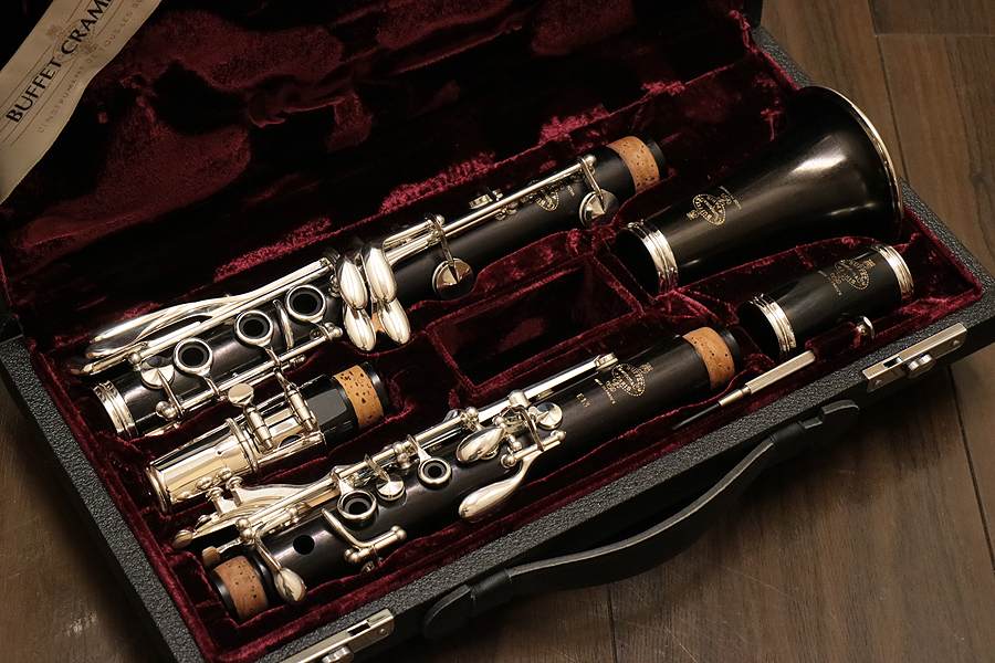 クラリネットの老舗ブランド・ビュッフェクランポンの世界的スタンダードモデルであるR-13のサウンドを受け継ぎながら初心者でも扱いやすく、比較的柔らかいリードを使うビギナーでも音程の取りやすい楽器として人気のE-13。キィパーツは銀メッキ仕上げ。指掛けは固定式のやや古い個体ですが、全体的に使用キズやロゴの薄れなども少なくコンディション良好です。全タンポ交換を含む全体調整済み。