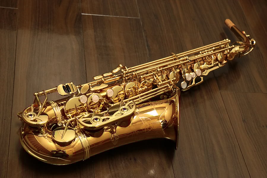 2014年まで製造されていた国産サックス専門メーカー・ヤナギサワのアルトサックス。現行のA-WO2に近い仕様で、管体には銅成分の多いブロンズブラスを採用し、柔らかな響きと温もりあるサウンドと鳴らしやすさのバランスの良さが特徴です。個人所有の楽器として国内外問わず非常に高い人気を誇ったモデルです。全体的に使用キズ、接合部からサビの発生が見られます。