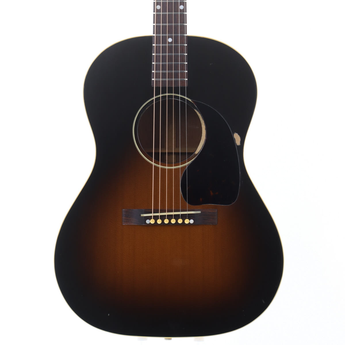 小振りなボディが人気のLG-2、現在でも生産が続いており、スモールGibsonの代表格として知られています。本器は、バナーロゴにロングサドルと40年代頃を踏襲しているカスタムショップ製の個体となっております。箱鳴り感が気持ちよく、弦高が低めなのでハイポジションでも弾きやすいです。また、サドル残はしっかりと残っておりますので、程よいテンション感とハリがあり、各弦のバランスも非常に良いです。J-45等の一通りGibsonを堪能した方にこそオススメしたいモデルです。