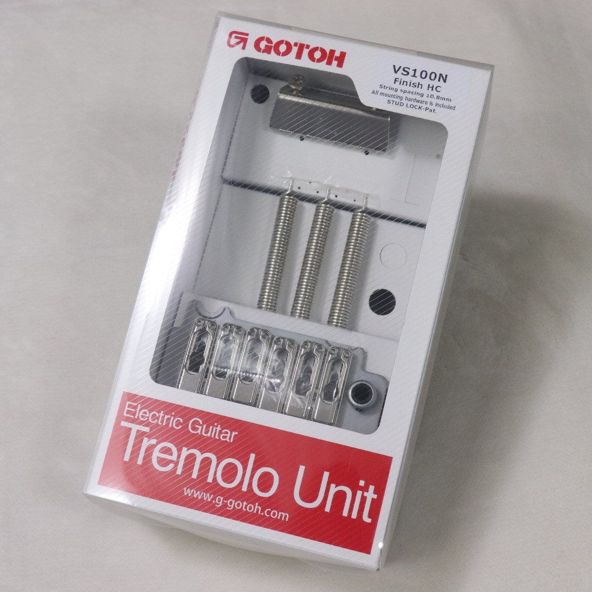 GOTOH VS-100Nは、ストラトキャスタータイプのギターに最適な2点支持型トレモロユニットです。硬化スチール製ベースプレートとステンレスサドルにより、サウンドの明瞭さとサステインを高めつつ、優れた耐久性を実現。各サドルの高さ調整が可能で、弦高の微調整もスムーズです。付属のアームやスプリング、スタッドボルトなどで交換・調整が簡単に行え、アップグレードパーツとして最適です。