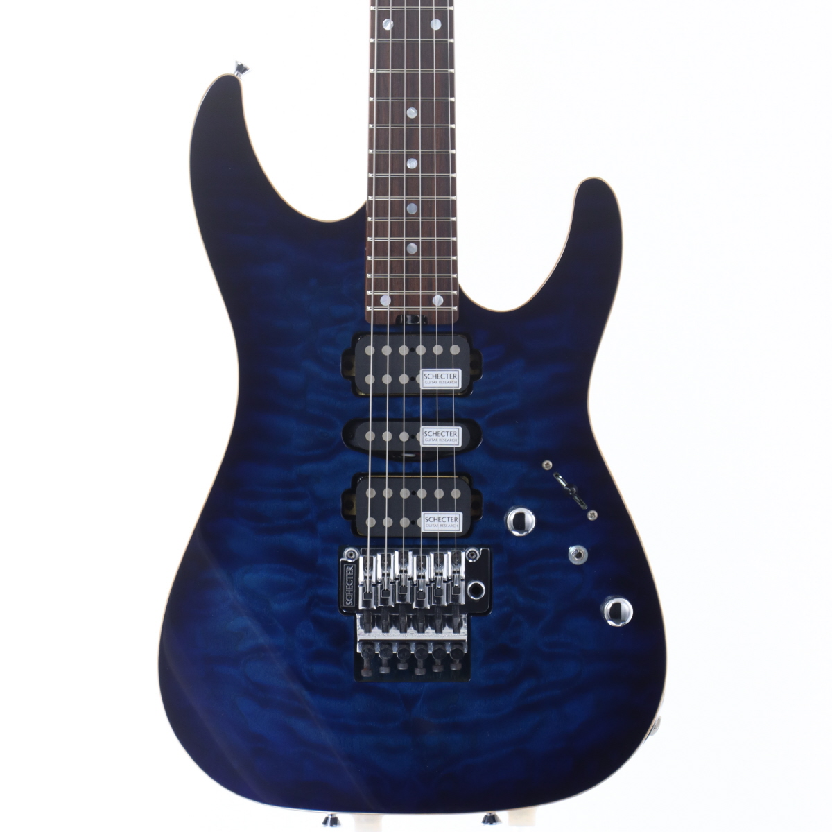 ネックはメイプル、指板にはローズウッドを採用。シェクター製ロック式トレモロユニットを搭載し、安定したチューニングと多彩なアーミングを両立。ピックアップにはSchecterオリジナルの「SUPER ROCK II PRO」「MONSTER TONE II PRO」を採用し、コイルタップも搭載。豊かな倍音とパワフルな出力を誇り、幅広い音作りが可能。
