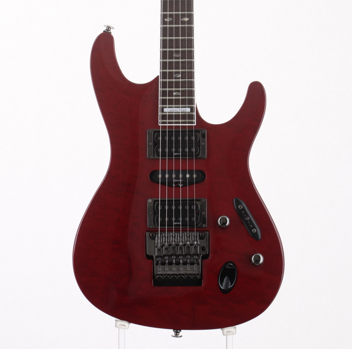 ボディはキルテッドサペリ&マホガニー、ネックはメイプルとブビンガの3pcs、指板はローズウッド、ピックアップはフロントがIBZ QM1、センターがIBZ QMS1、リアがIBZ QM2を搭載。