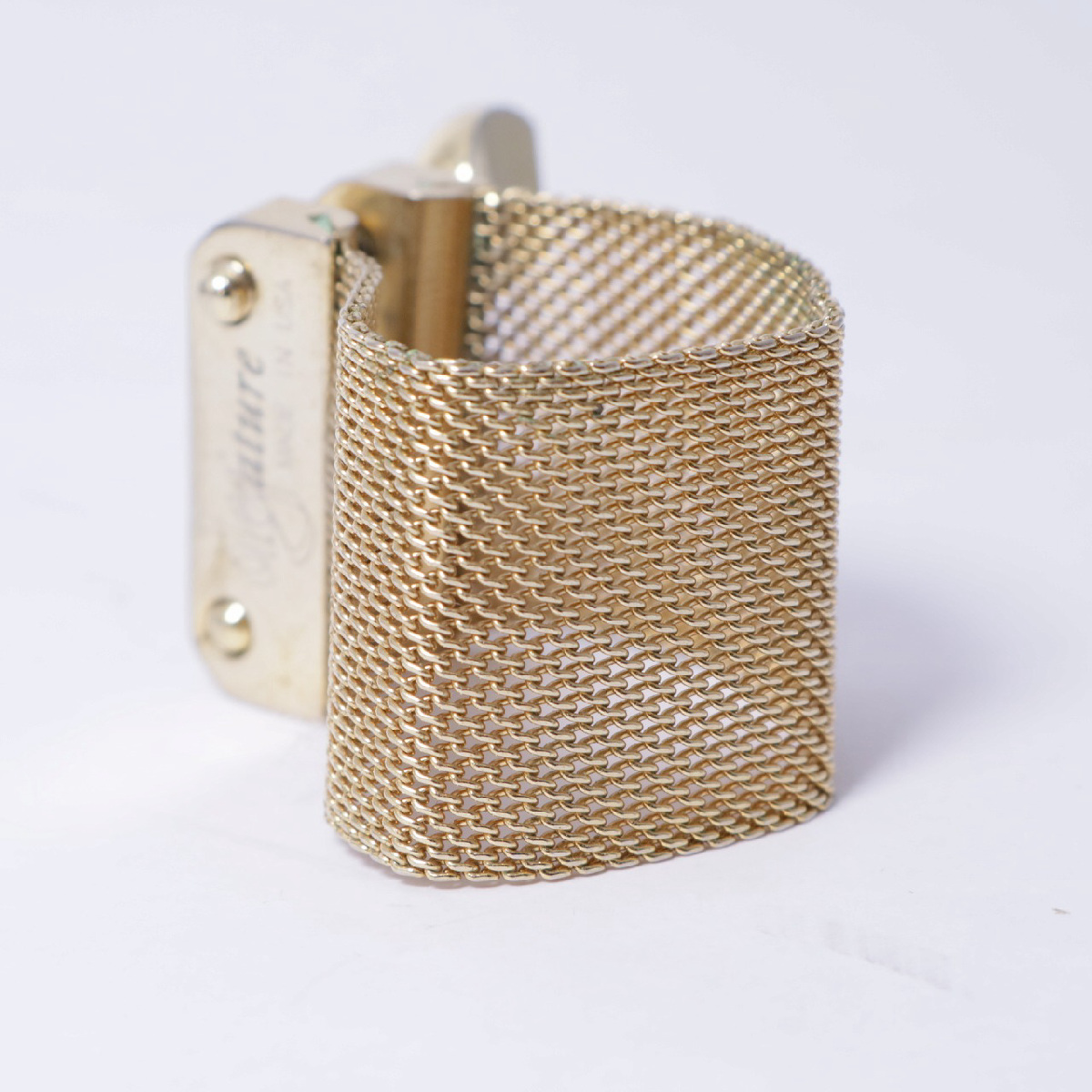 オレッグのテナーラバーサイズリガチャーです。楔形で扱いやすいリガチャーです。適度な重量感を感じる響きでマウスピースのキャラクターをしっかり出してくれそうです。汎用性もあるので持っていると便利なリガチャーです。