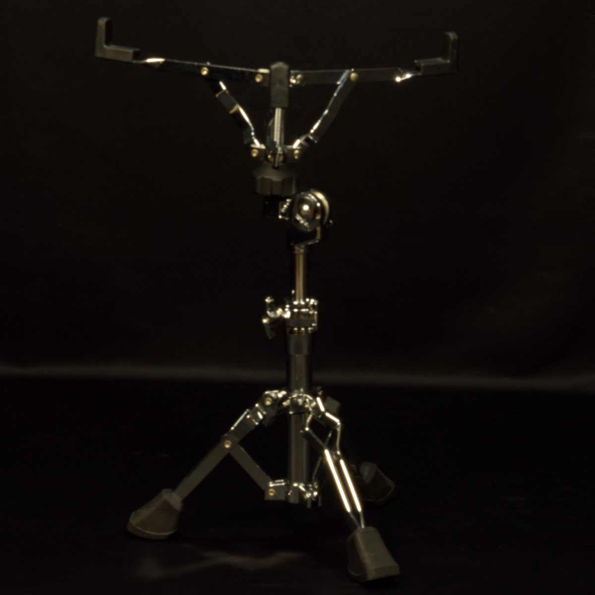 一般的な14”口径のスネアドラムのみならず、12”や13”口径、更には15”口径までセッティング可能なスネアスタンド。