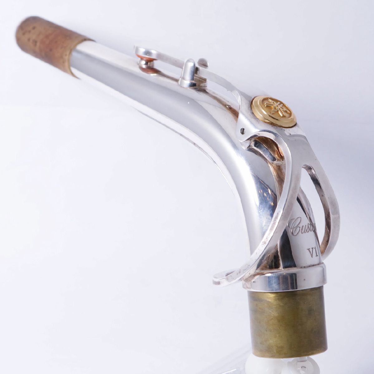 ヤマハのアルトサックス用ネックです。Custom V1ネックの銀メッキになります。使用に伴う小キズやメッキくすみはございますが、大きなダメージも無くコンディション良好です。自由度の高いネックだと思います。