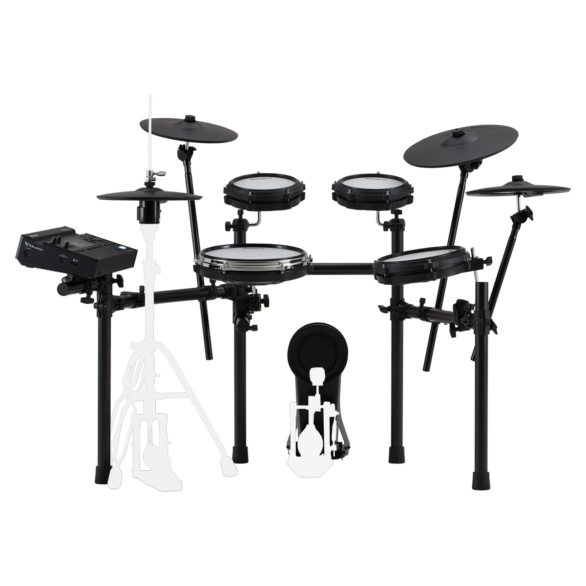 ハイハットスタンド、キックペダル、ドラムスローン、ドラムスティック、ドラムマット、モニターヘッドホン、アンプ内蔵スピーカーは別売です。