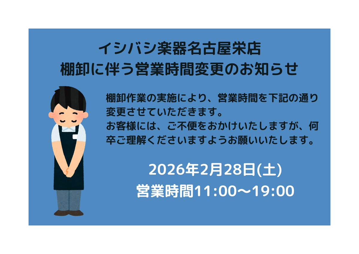 イシバシ楽器一部店舗営業時間変更、詳細についてはこちらからご確認ください