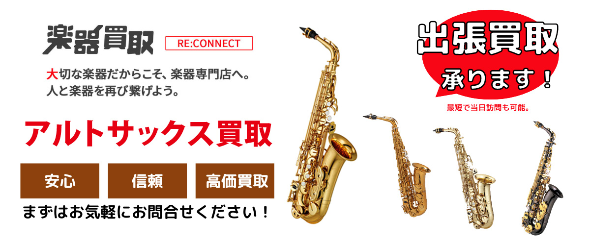 ヤマハ、セルマー、ヤナギサワなどの有名ブランドのサックスは高価買取。アルトサックス買取相場は買取価格検索で一発検索&無料査定いたします。アルトサックス 売るなら出張買取が便利です。価格事前確認はLINE査定もOK!その他、駅チカの店頭へ持ち込み買取や、宅配買取・複数、重たいものは出張買取も承ります!ヴィンテージサックスも多数実績ございます!サックスの買取おすすめ業者として多数メディアで好評いただいております。