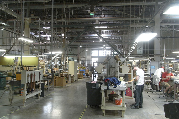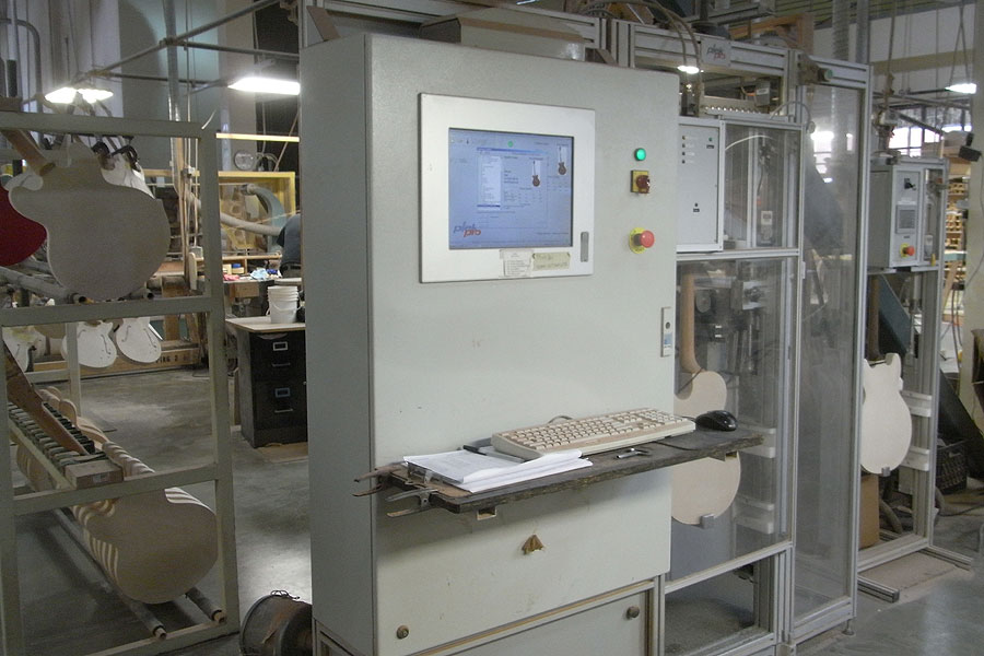 カラマズー時代から使用されているプレスマシンや、ボディやネックの成型に使用されるCNCルーター、ナットやフレットの加工に使用される最新のPREKマシンなどを工場内に配備。ファクトリーの中で木材のシーズニングからラミネイト、ボディの組み上げやネックのシェイピング、ジョイント、セルバインディング接着やラッカー塗装、アッセンブリ、最終セットアップまで全ての工程が一貫して当工場内で行われており、手練れのクラフトマンにより丁寧に製作されています。