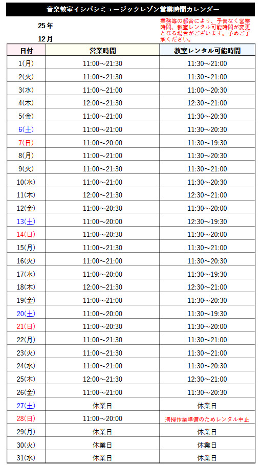 但し、教室(会場)近隣の感染の拡大状況や地域事情などを考慮し、お通いの各楽器店・会場にて個別に休講の判断をさせいただく場合がございます。また 、政府および各自治体による要請に従い、レッスンの休講や営業時間が短縮される場合ございます。これに伴い、お客様にレッスンの日程や開始時間の変更・調整をお願いさせていただき場合もございます。その場合は各教室(会場)より個別にご相談させていただきます。