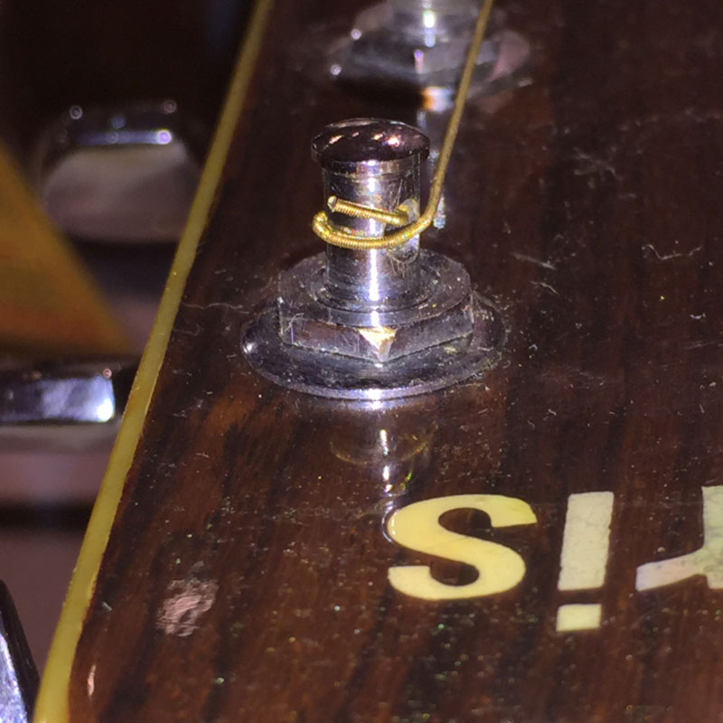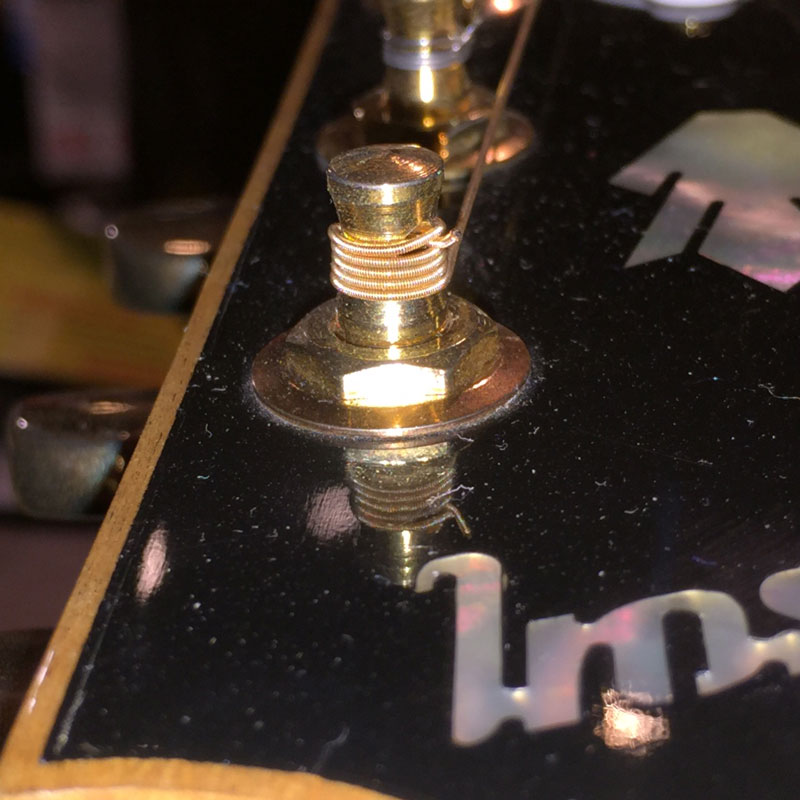 また、切れるパターンで非常に多いのが、チューニングの際や、弾き終わって弦を緩める際にペグポストの部分で切れてしまう例です。しかしながら、この現象については、対策を施す事である程度防ぐ事ができます。