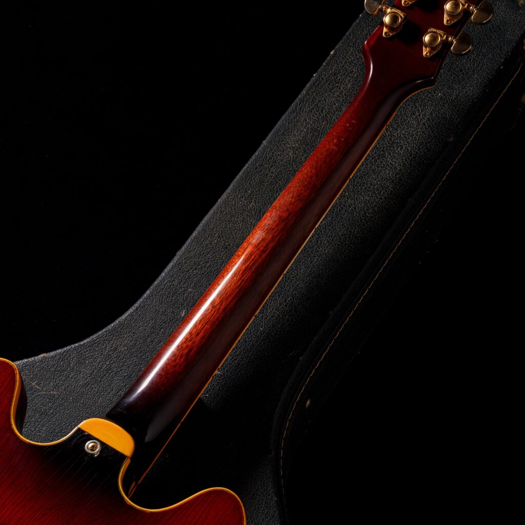 シリアル:306XXXの1965年製の本機。カラマズーファクトリーにて生産されたエピフォンセミアコモデルの最上位機種となります。ギブソンES-355と同様なグレード品です。