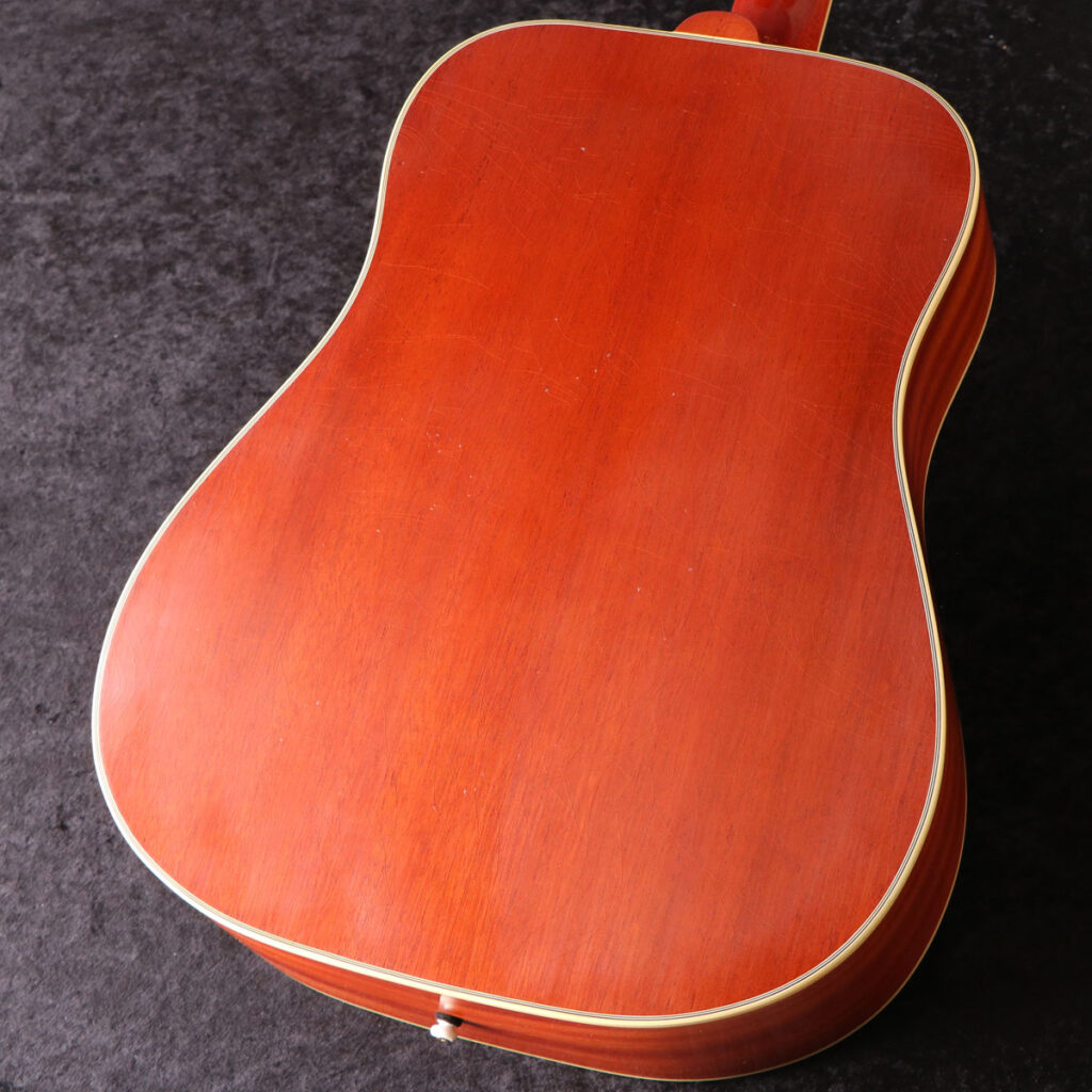 木材としては、ボディトップスプルース、サイドバックマホガニーのGibson王道の組み合わせ。もちろん単板、ラッカー塗装です。