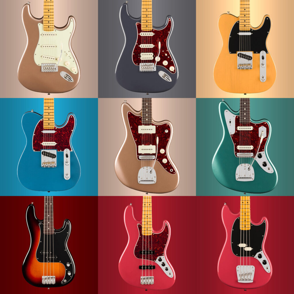 主力であるストラトキャスターやテレキャスターはもちろん、本シリーズではジャガーやホットショットテレキャスター(後述)のモデルもラインナップされております。その他はパフォーマーの頃からあったジャズマスターやプレシジョンベース・ジャズベース、ムスタングベースのご用意がございます。