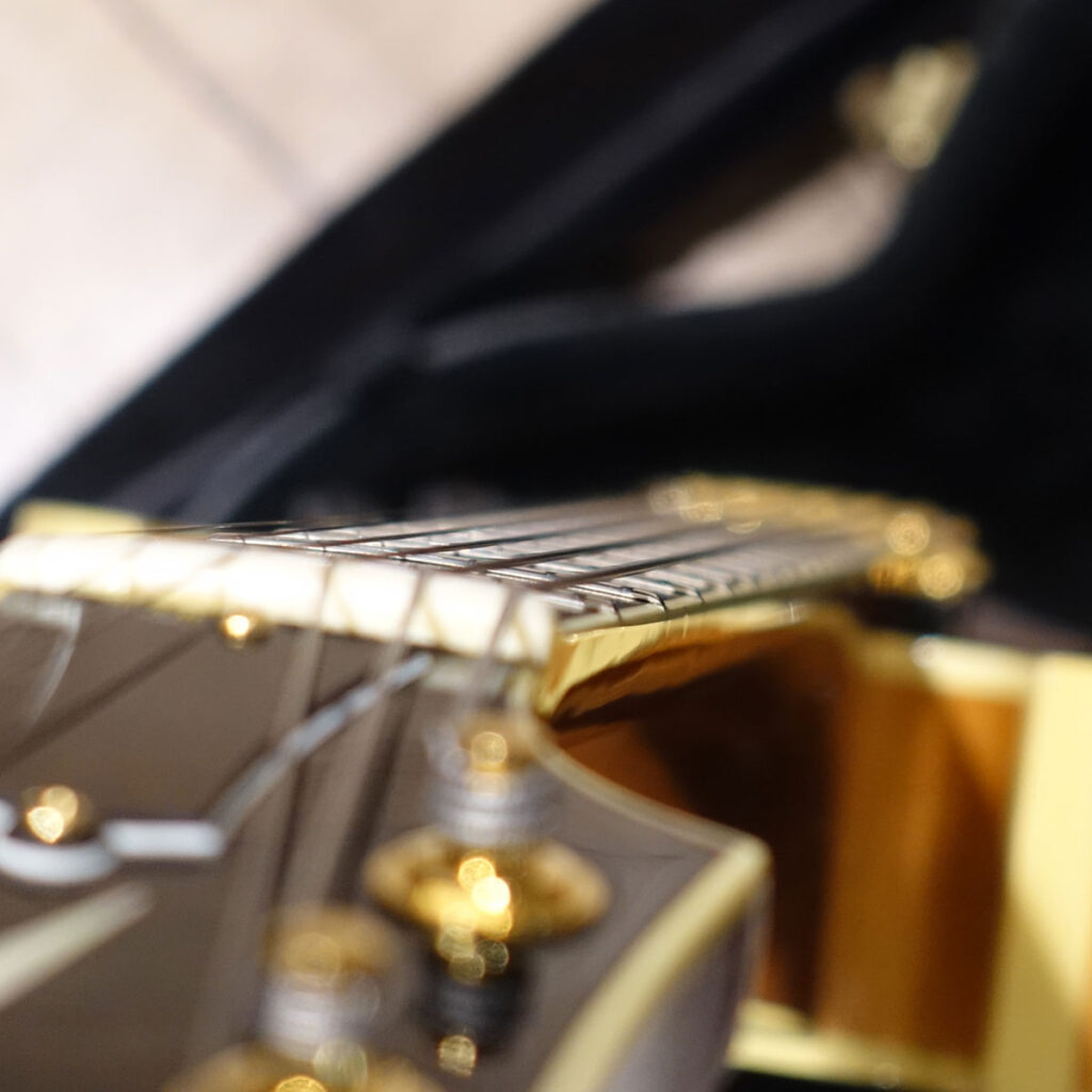 指板はエボニー。パールとアバロンのインレイが美しいです。