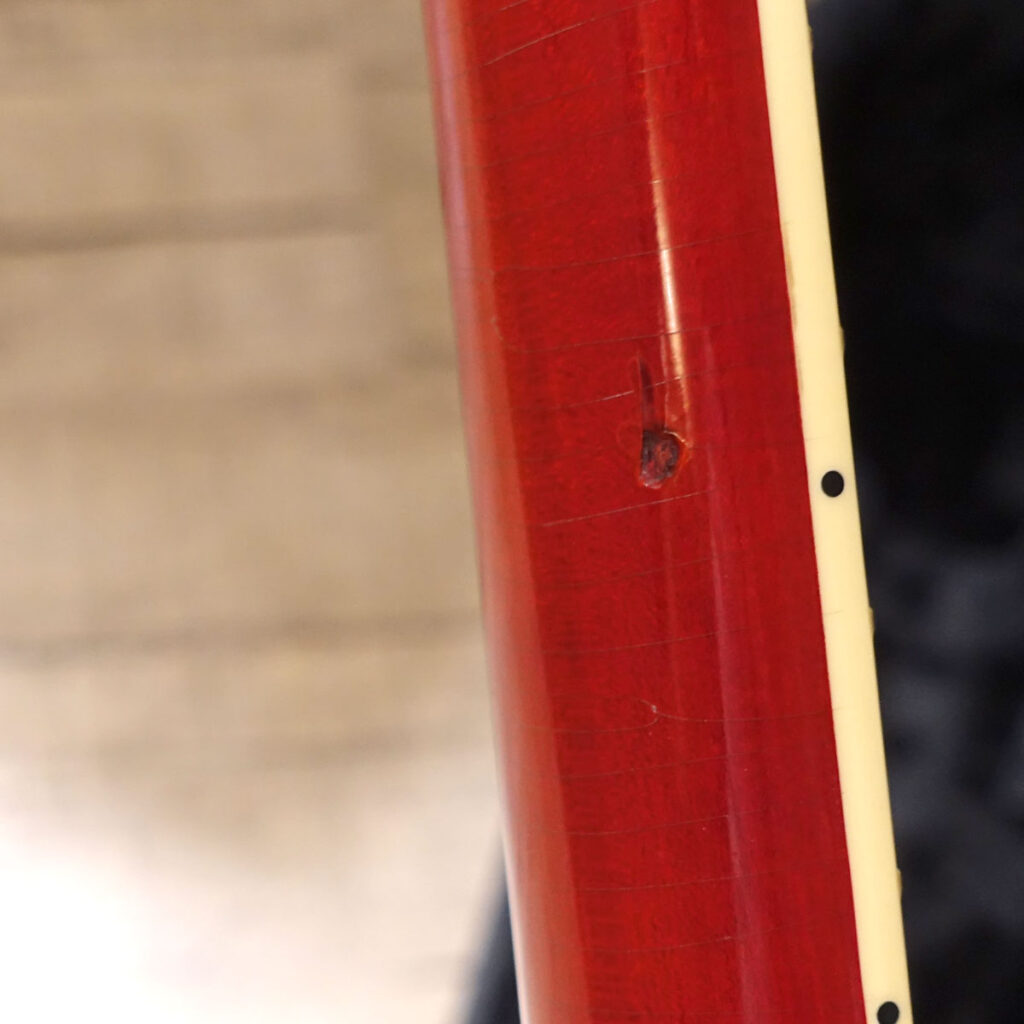 ネック裏の7フレット付近にて塗装が剥がれて木部が露出している打痕のような箇所がございます。