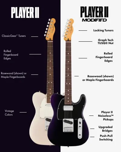 Player Ⅱ から Player Ⅱ Modified になると、シリーズの系統(スタンダード→モダン)と価格帯(10~13万円→15万円後半~17万円)が別物になっているのがお分かりいただけたかと思います。