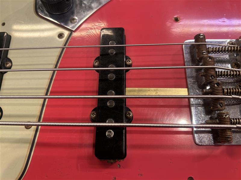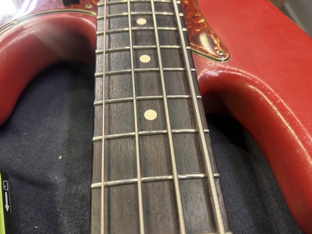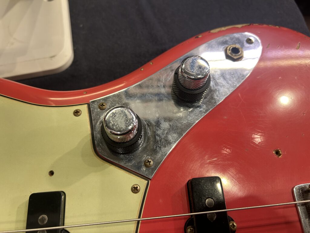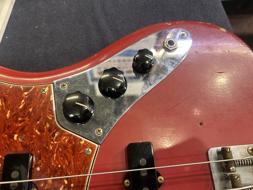 今回入荷したのは1962年モデルのジャズベースです。1962年といえばジャズベースが発売された1960年から採用されていた2Vol 2Toneのスタックノブが2Vol 1Toneの3ノブスタイルに変更になった年ですね。具体的には1962年代中盤あたりでの変更でした。