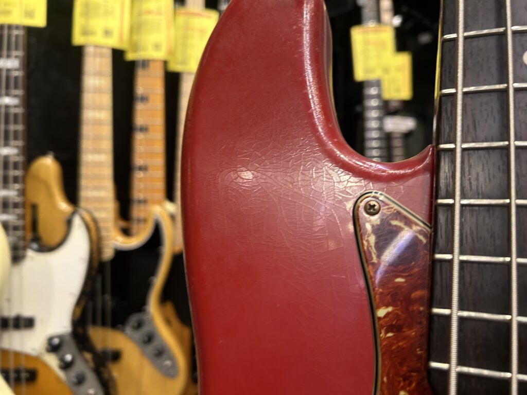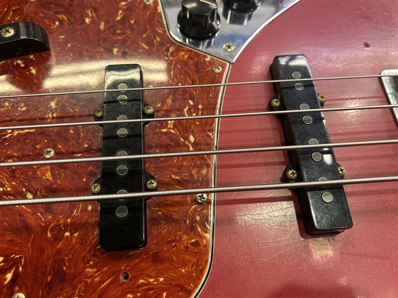 しかしながら上記の2点は若干時期がズレており、指板の貼り方の変更は3ノブスタイルへの変更よりほんの少しだけ後のこと。つまりほんの僅かな期間だけ「3ノブスタイル×スラブ貼り」というスタイルのジャズベースが市場に存在したということになります。1966年代中盤の「バインディング×ドットポジションマーク」に比べれば少々知名度は低めですが、こちらもバインディングドットと並ぶくらいマニア垂涎モノのレアスペックなんですね。今回入荷したモデルはそんな大変希少な3ノブスタイル×スラブ貼り指板を再現したモデルになります。