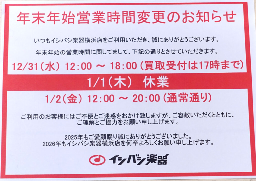 2026年もイシバシ楽器横浜店を何卒宜しくお願い申し上げます。