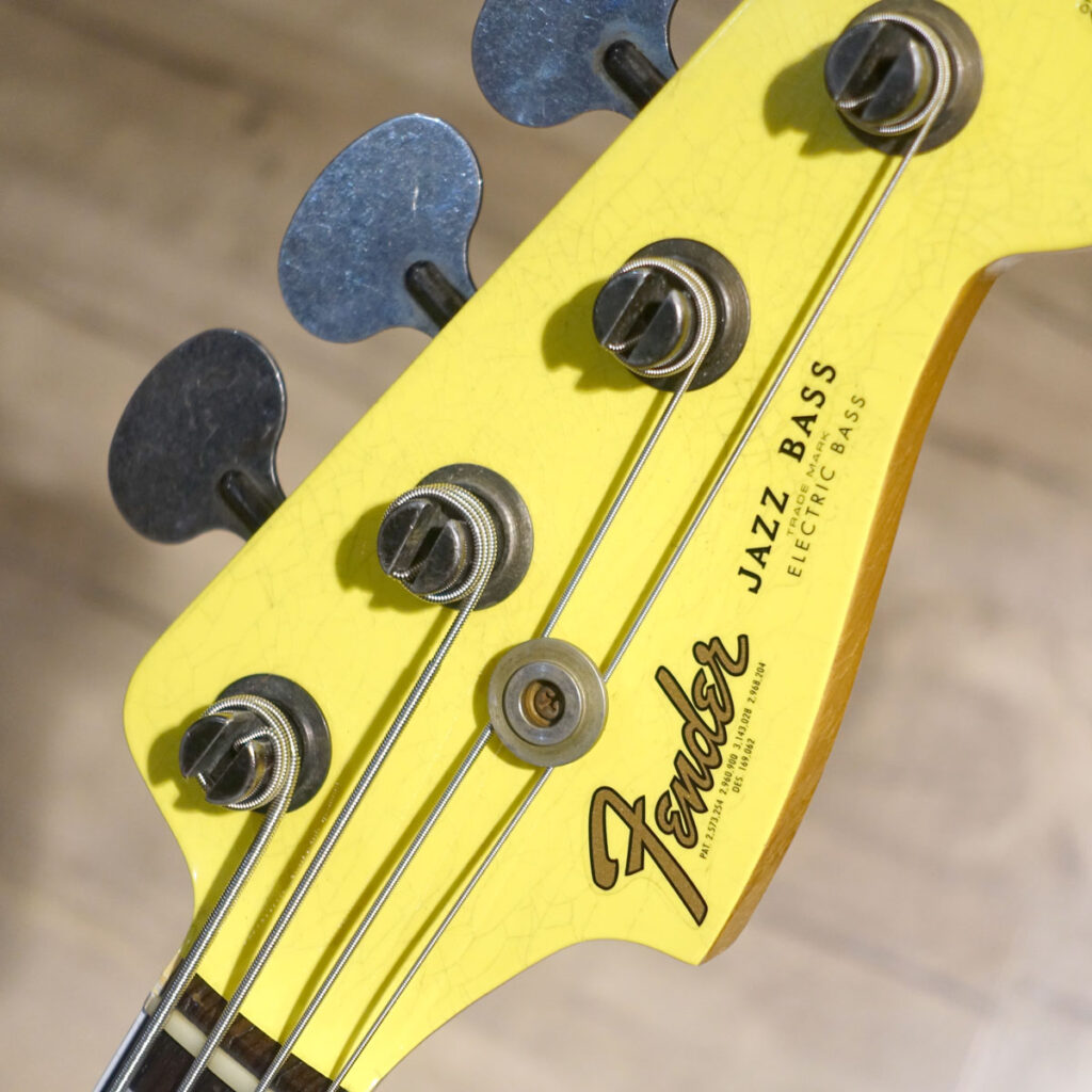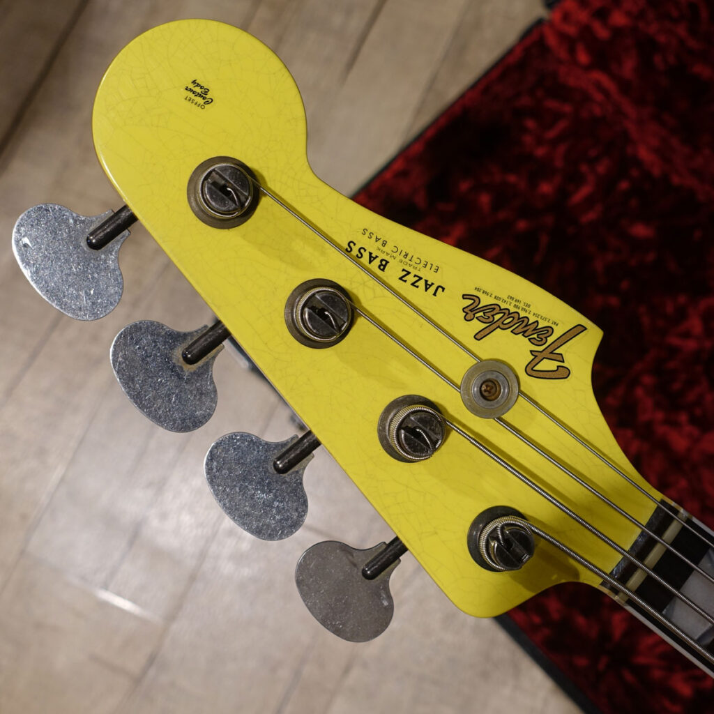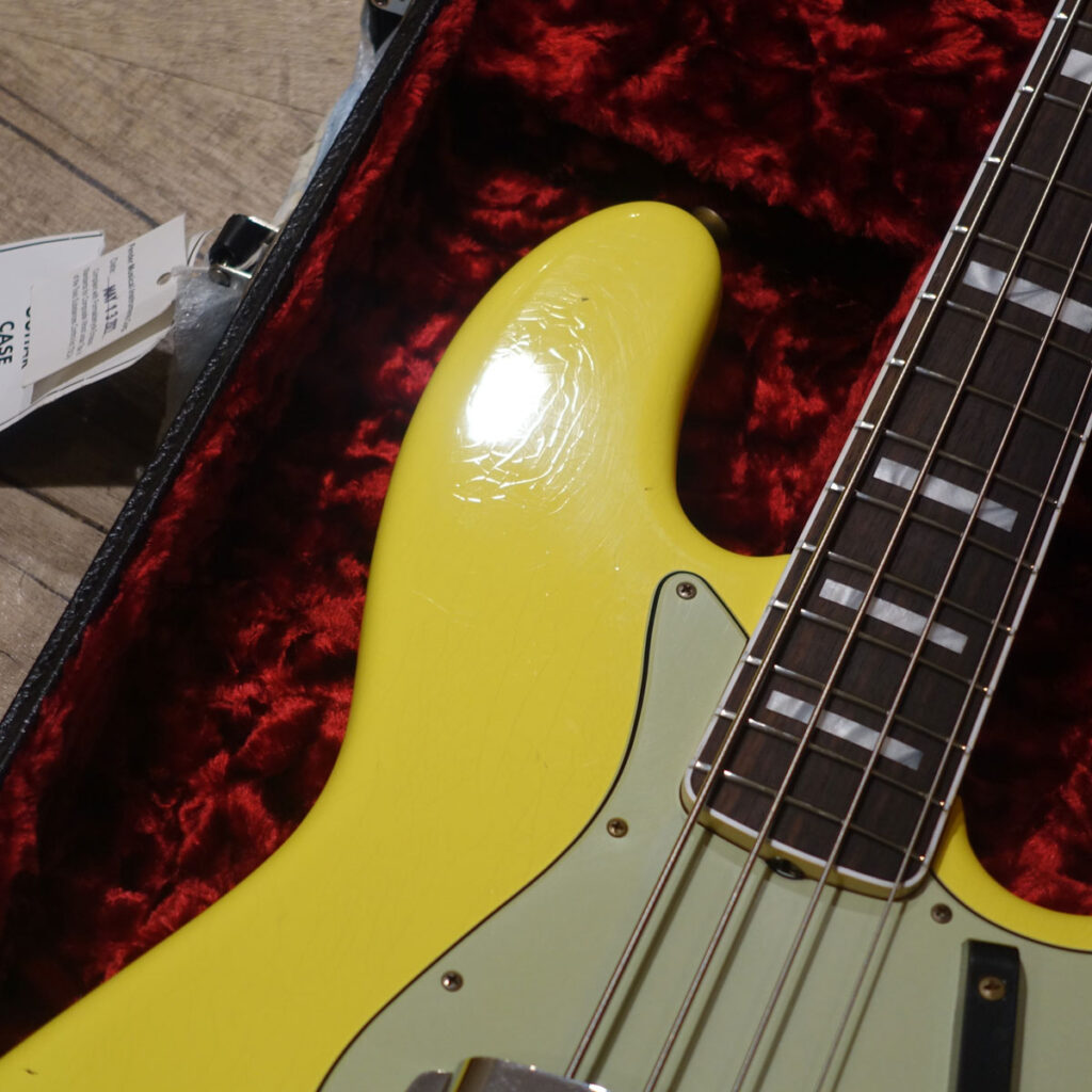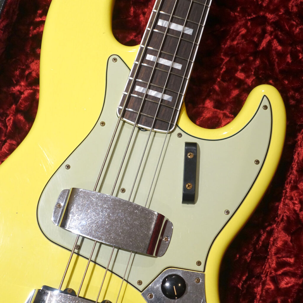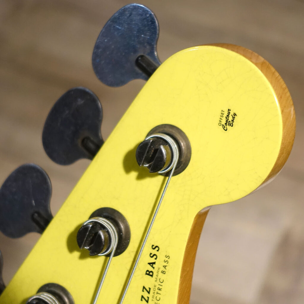 ジャーニーマンレリックが施された1966年仕様のジャズベース、フェンダーとしては珍しい「黄色」。