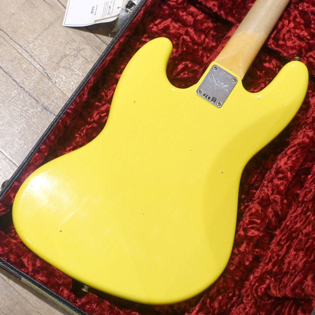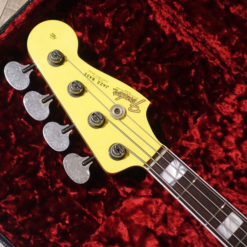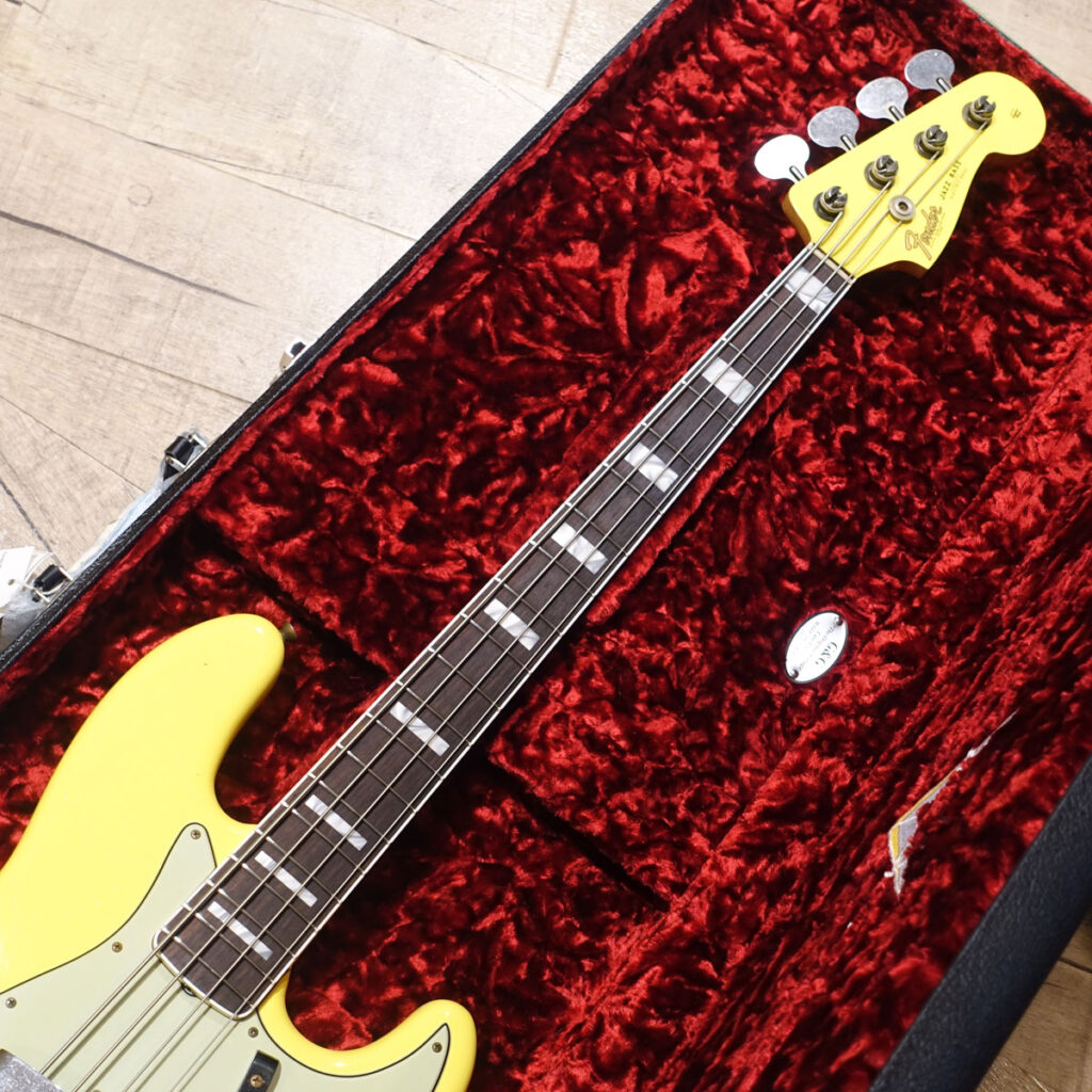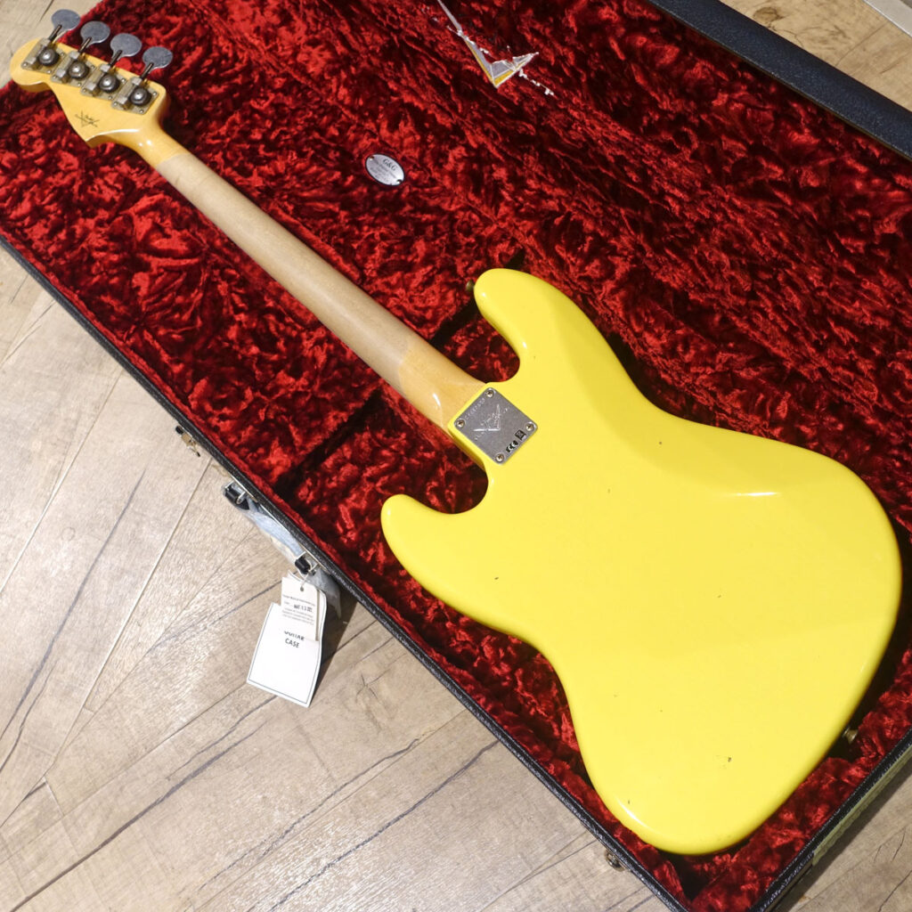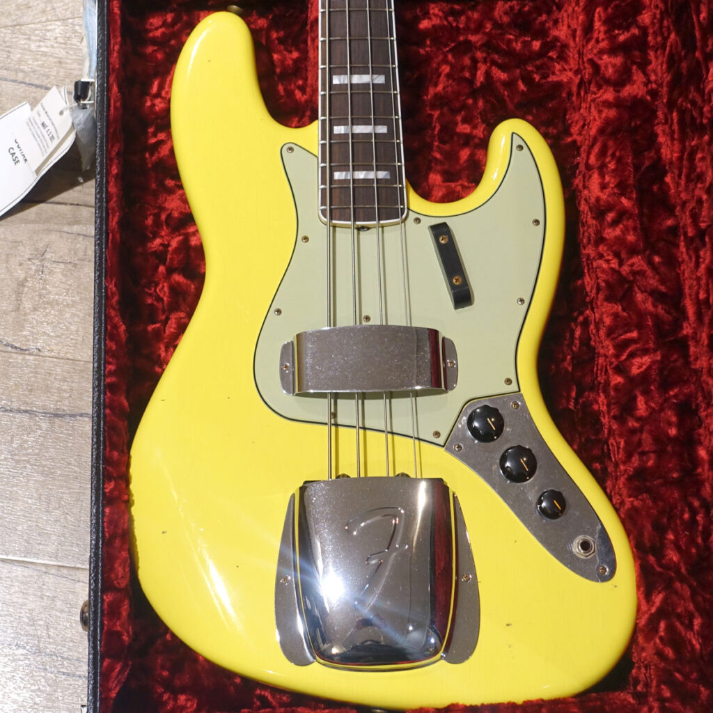 ジャーニーマンレリックが施された1966年仕様のジャズベース、フェンダーとしては珍しい「黄色」。
