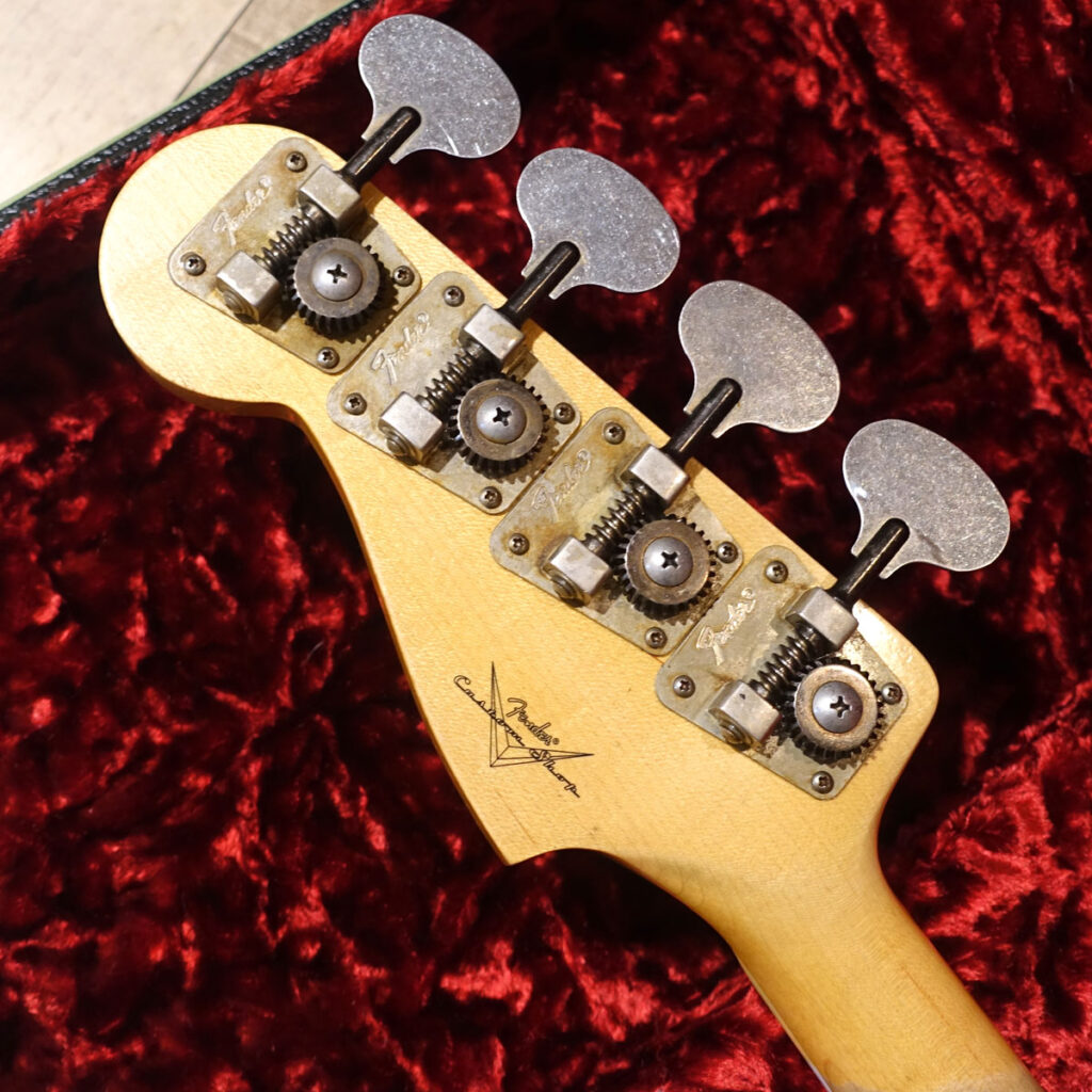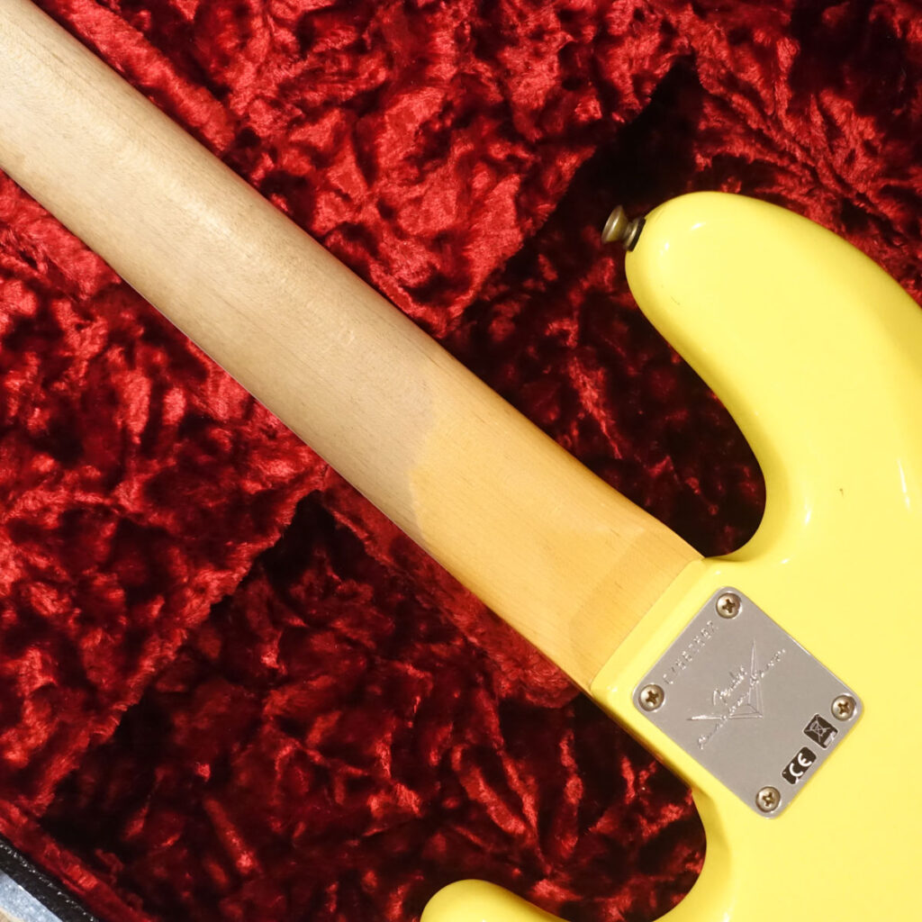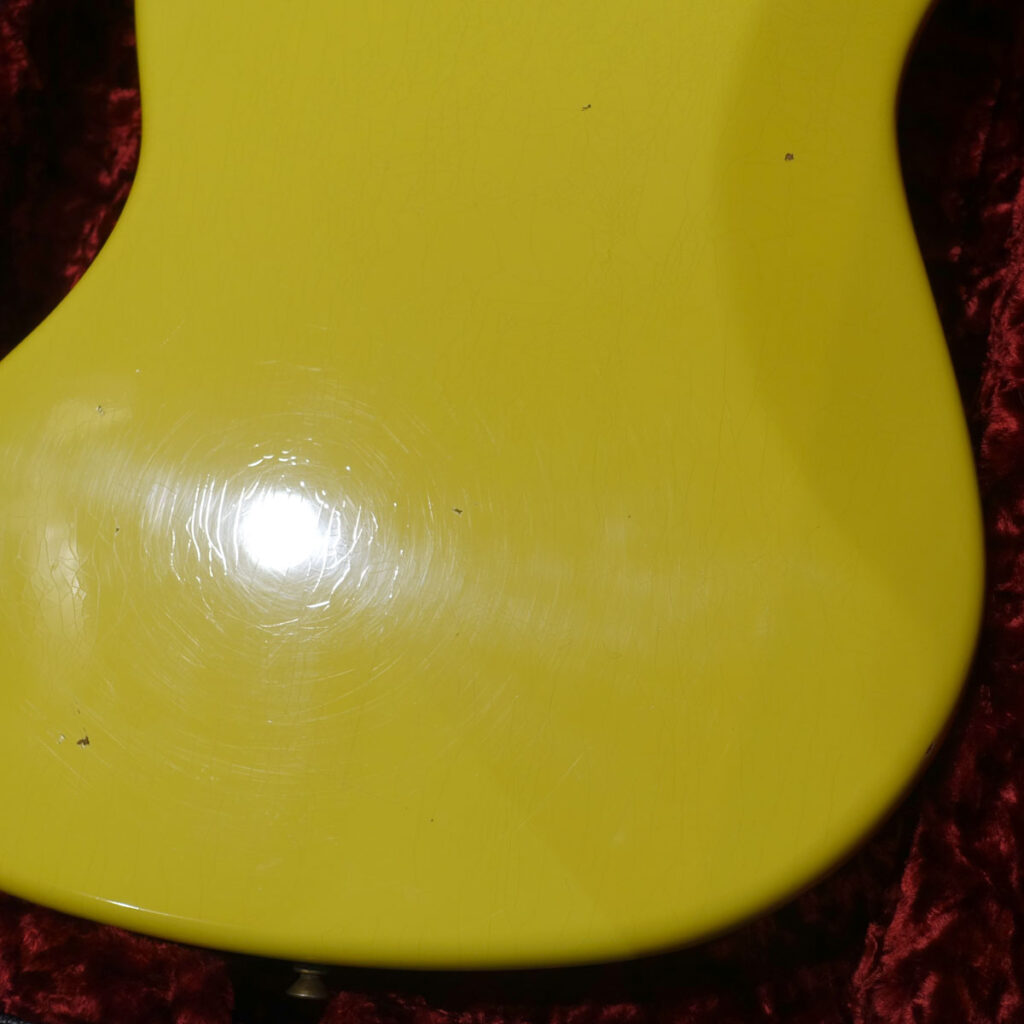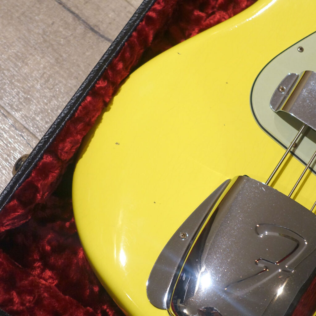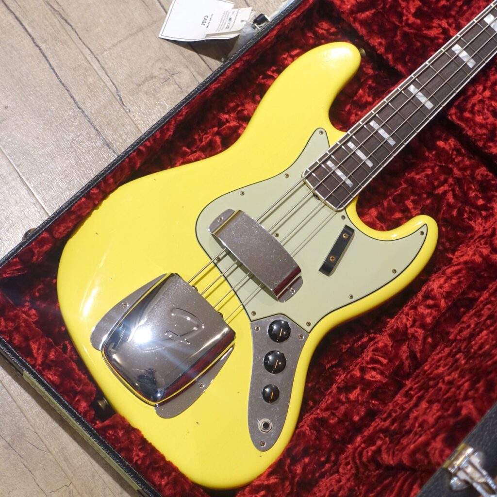 ジャーニーマンレリックが施された1966年仕様のジャズベース、フェンダーとしては珍しい「黄色」。
