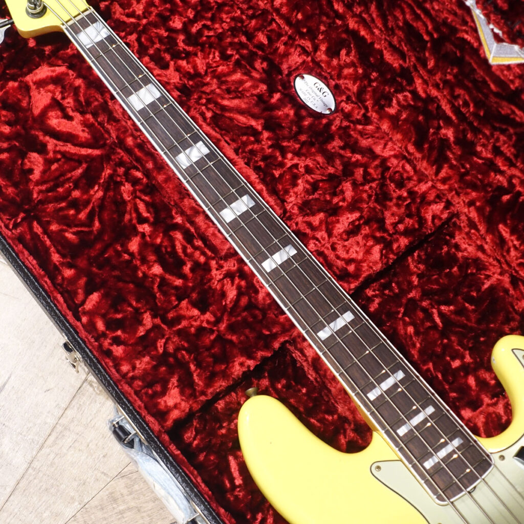そんなフェンダーとしてはとっても珍しい黄色を採用したこちらは、1966年仕様ジャズベースを当時の担当スタッフの解釈にてオーダー、世界に一本しかないモデルです。