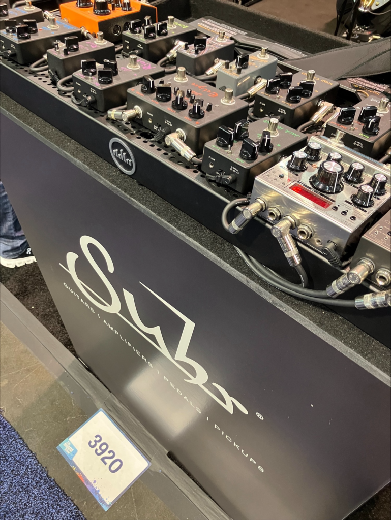 Suhr のペダルコーナーは種類が多く驚きました。決して安くはないのですがその魅力から一個は所有してみたいところ….!