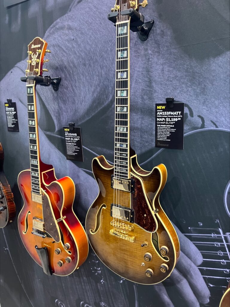 Ibanezは伝統的な Artcore 系統 の中で、箱鳴りの豊かなセミホロウ/フルホロウ・モデルも複数ラインナップとして展示していました。