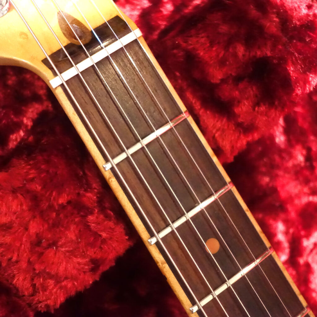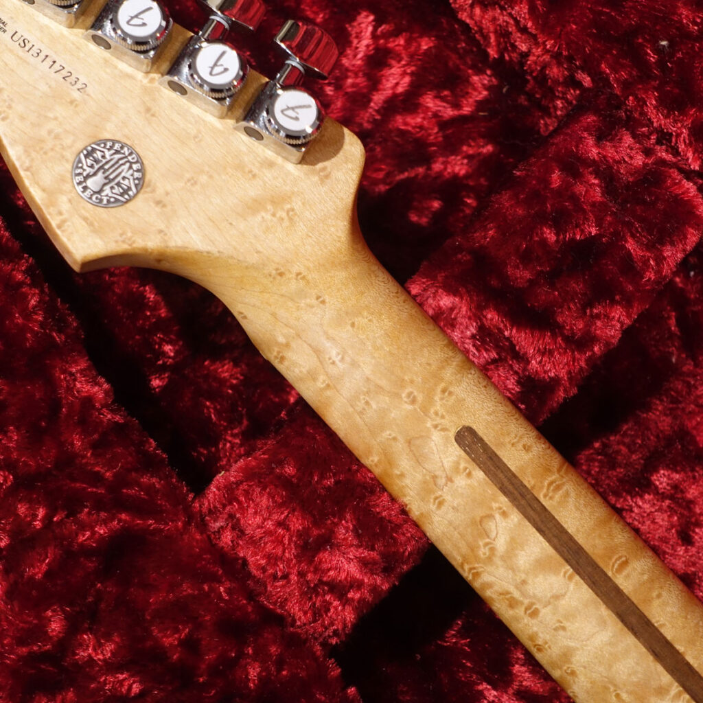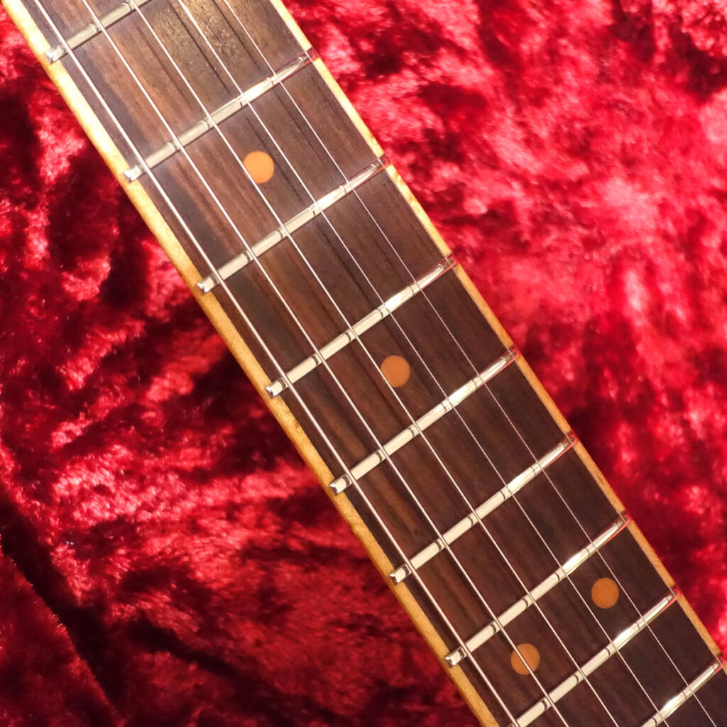 ちなみに当時はローズウッドネックをくり抜いてバーズアイメイプル指板を埋め込むという逆パターンのモデルも存在していたそうです。