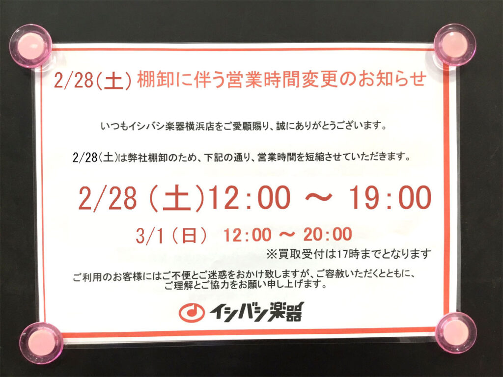 いつもイシバシ楽器横浜店をご愛顧賜り、誠にありがとうございます。