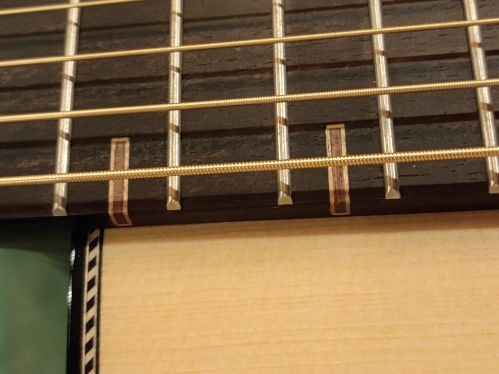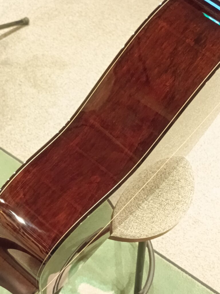 サイドのグアテマランローズウッドも複雑で興味深い木目となっています。絵の具を乗せたような陰影のある表情です。