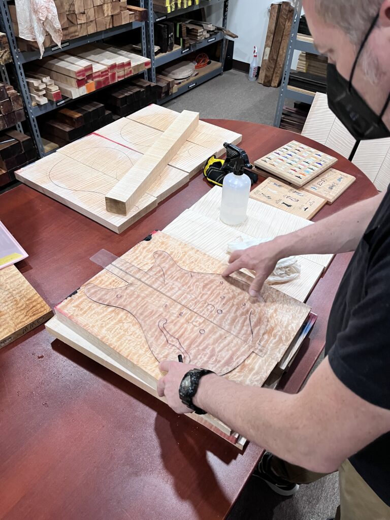 ボディの木材選定は、Private StockディレクターのPaul Miles氏に監修いただき、最も美しい部分を採用しています。