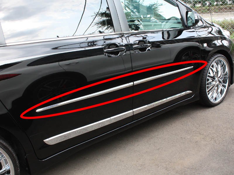 車のクロームモール(メッキモール)は、窓枠(ウインドウモール)、ドアサイド、バンパーなどに装着し、高級感の演出やドアエッジの保護(ドアガード)に役立つドレスアップパーツです。